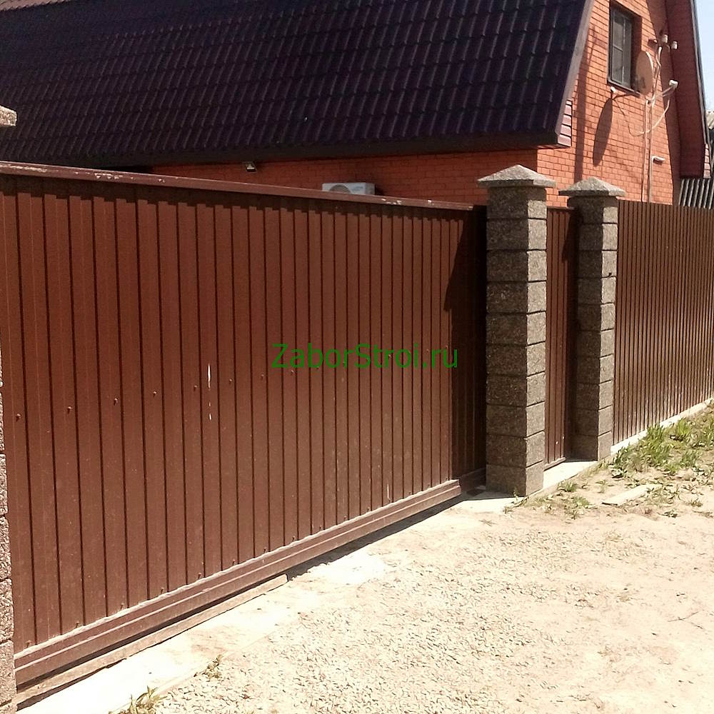 Откатные ворота из профнастила с встроенной калиткой и автоматикой