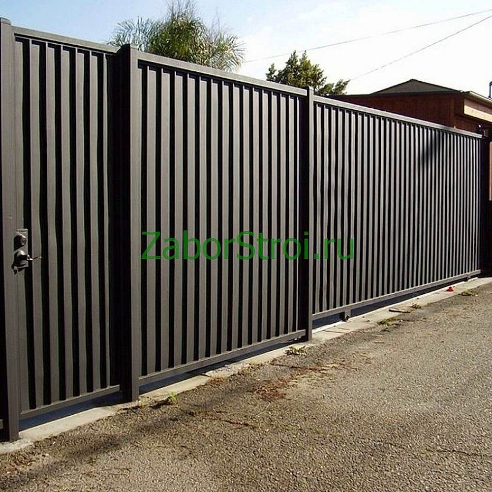 Откатные ворота из евроштакетника с встроенной калиткой и автоматикой